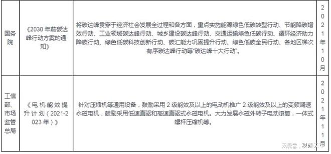 能效要求日益提升。節(jié)能減排是我國經(jīng)濟發(fā)展從高速增長到增長轉變要完成的任務,也是實現(xiàn)“碳中和”的必然手段之一。因此隨著不斷重視節(jié)能減排,“碳中和”進程不斷推進,對空氣壓縮機行業(yè)的節(jié)能要求日趨嚴格,對空氣壓縮機能效等級的追求也進入新的階段。
